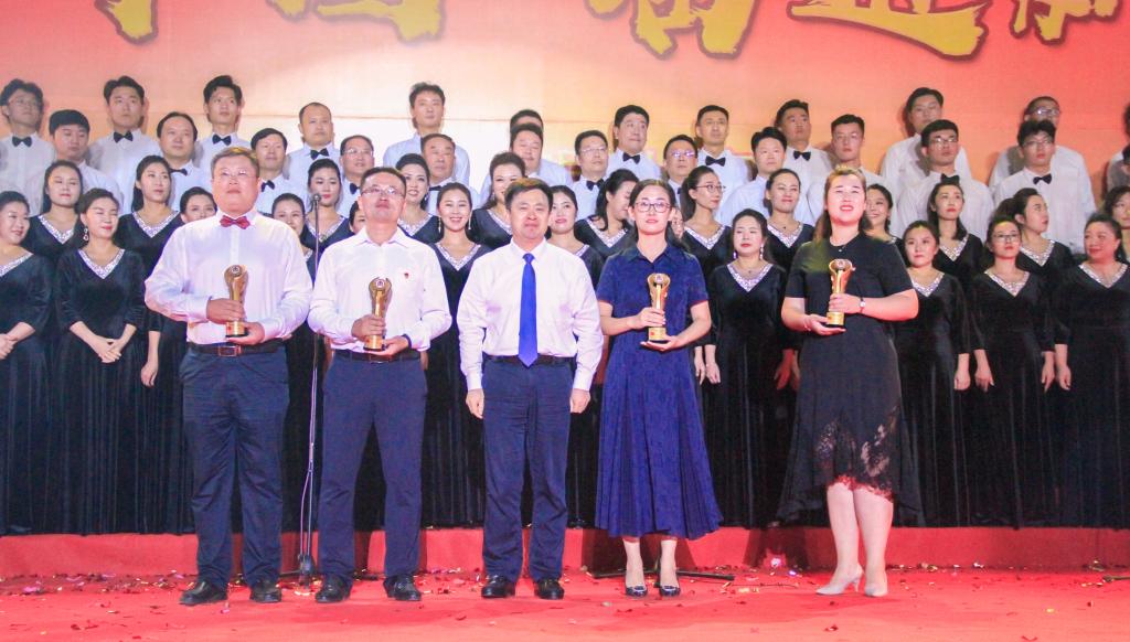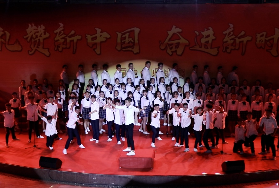 代表队以9.95分的成绩荣获第一名。活动接近尾声,学校领导带领全场齐唱歌曲《没有共产党就没有新中国》,回忆往昔峥嵘岁月,歌颂伟大的党和祖国。比赛结束后全体领导嘉宾合影留念。