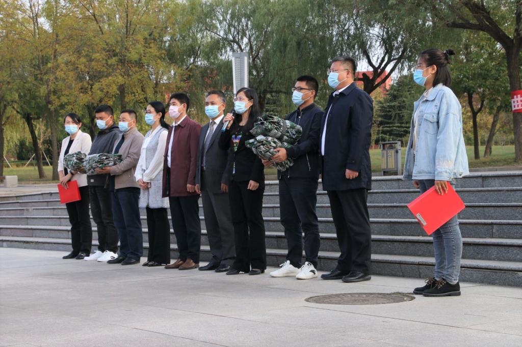 相关领导及部分师生代表参加活动,受赠方山东日建建设集团工会主席秦卓携工人代表出席仪式。