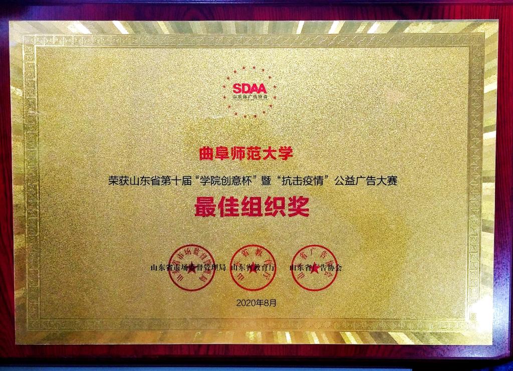 山东省第十届“学院创意杯”广告大赛由山东省市场监督管理局、山东省教育厅联合主办,山东省广告协会等单位承办。2020年广告大赛参赛作品数量创历史新高,共征集省内外近百所院校和多家企业、单位的各类广告作品10012件,作品质量与创意水平显著提升。