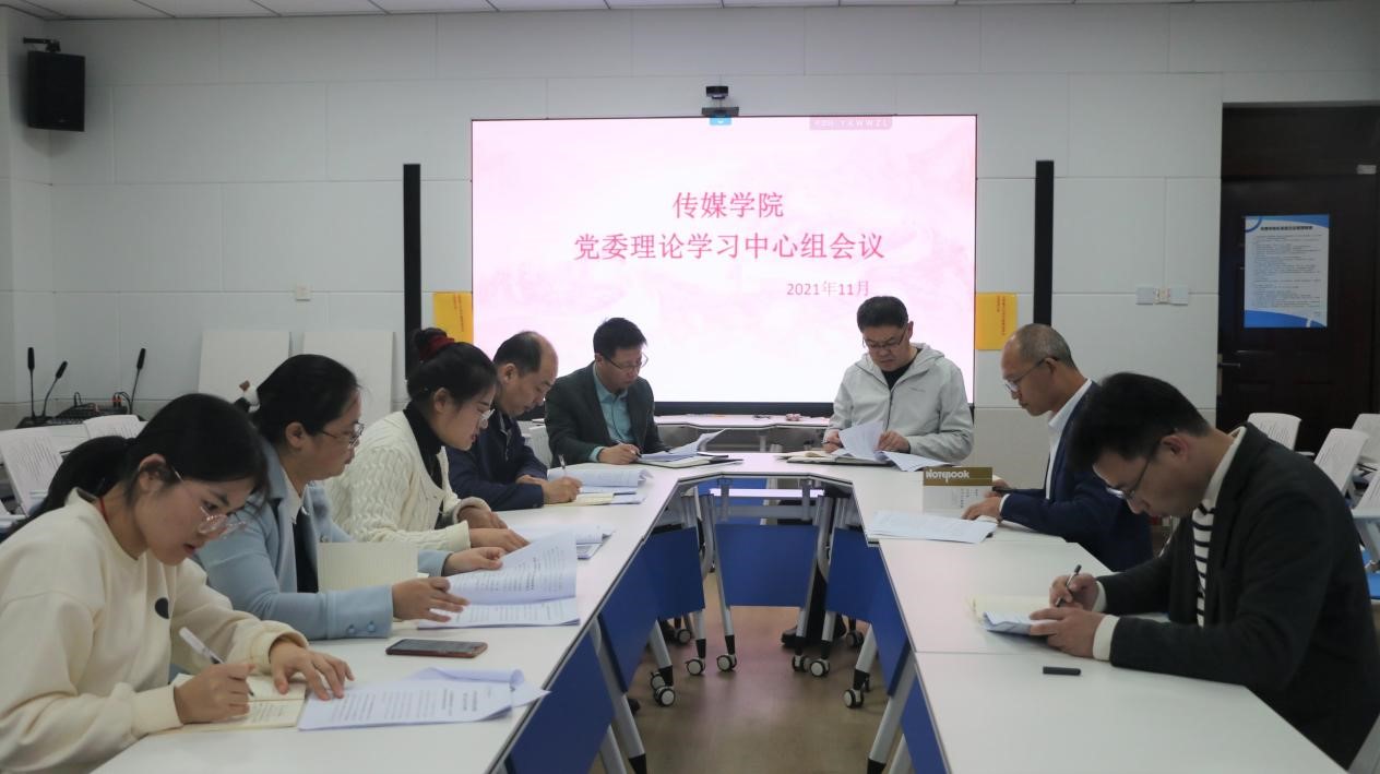 理论学习中心组于JC813会议室召开党委理论学习中心组会议。学院党委书记王宏杰、院长王焕景、副书记田荣林、副院长赵可云、教职工党支部书记徐振国、研究生党支部书记韩婷、本科生党支部书记武莉华、辅导员商秀英参加会议并进行深入学习。