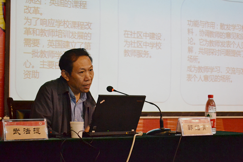 报告会上,郭绍青教授从教育的发展入手,详细的分析了教师培训中存在的“模式单一”等问题。目前教育部启动新一轮中小学能力培训,包括课程目标、课程主题,课程建设要求。郭教授提出改变教学模式才能改变学生的学习模式,并建议教师掌握基本的教学方法技术,将技术深度融合到教学方法中去,掌握相应的技术素养。郭教授利用ppt及视频短片的形式向大家展现了中小学教师信息技术能力课程标准和国培模式,教育部进行国培的全面改革政策、多媒体的使用与普及,网络教学平台的探究式学习方法。在随后的观众问答环节中,郭教授针对提出的问题,用深刻细致的讲解引起台下观众的阵阵掌声。