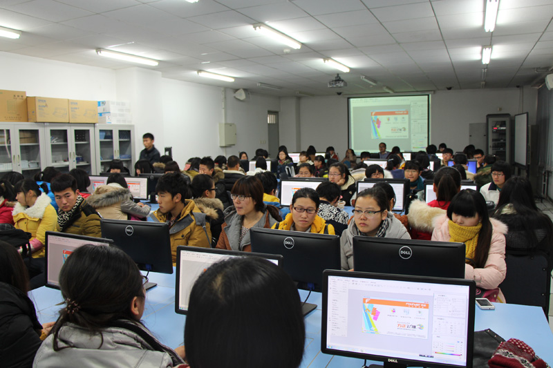 一行人前往北京印刷学院,学生在该校新闻传播与出版学院的数字出版实验室里亲自上机实践,在专业老师们的指导下体验了方正飞翔排版软件的神奇之处。与此同时,老虎机