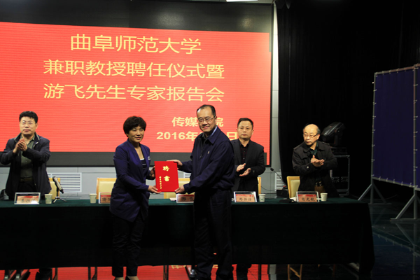 5月3日上午,游飞先生兼职教授聘任仪式暨《中国人的电影梦》专家报告会在传媒学院演播厅隆重举行。副校长康淑敏出席仪式,并为游飞先生颁发兼职教授聘书。聘任仪式由老虎机