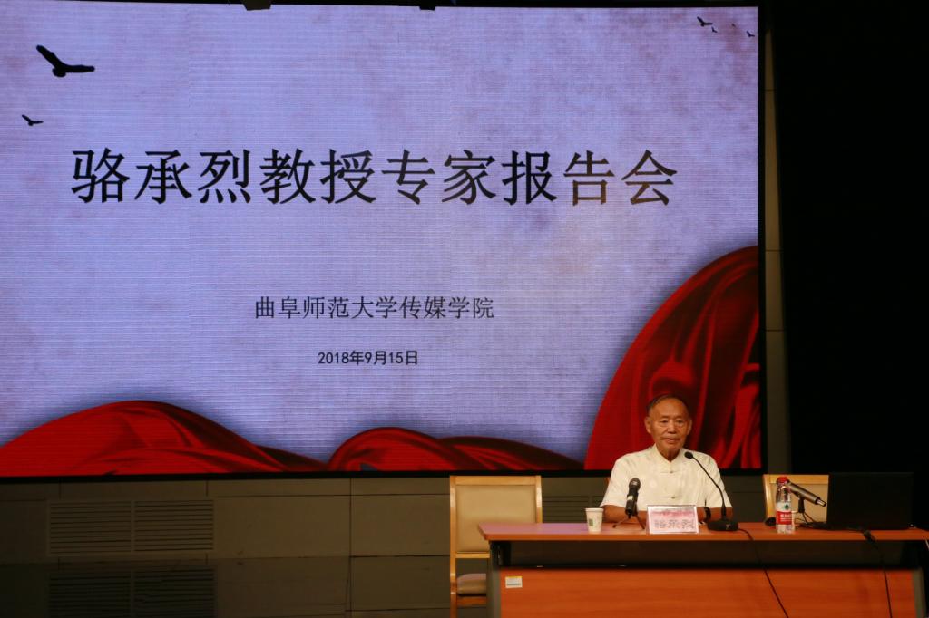 报告会开始前,胡凡刚介绍了骆承烈教授的成就与学术主张,并希望骆教授从专业发展、科学研究以及教学研究发展等方面对学院工作给予指导。报告会上,骆承烈教授从“传统文化与孔子”、“优秀传统文化对现代社会的意义”以及“传统文化中的永恒”等几方面展开了精彩论述。骆教授分析了儒学思想历经两千多年依然富有生命力的原因,从先秦儒学、玄虚儒学、宋明理学、复兴儒学等视角,解读了孔子思想的精华所在。使在座师生对“以儒家文化为核心的中华优秀传统文化”这一论述有了更加深刻地认识。随后骆教授以由他创意、改编并任总顾问《演说论语》等作品为例,分析了影视媒体、新媒体视域下儒家文化的传播问题。最后,他表示,要从创新中弘扬与传播中华优秀传统文化,不断增强文化自信,为实现伟大的中国梦而努力奋斗。