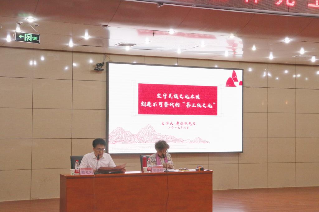 报告中,黄会林先生以《坚守民族文化,创造不可替代的“第三极文化”》为题,从三个角度全面展示了我国文化发展现状和“第三极文化”的发展趋势。她对“第三极文化”的特征和内涵作了分层阐述,提出提高国民文化自觉意识的关切,指出当代年轻学子的历史使命,并从学术研究、艺术创作、文化传播、资源整合四个方面,详细论述“第三极文化”目标的实现路径。报告会开阔了传媒领域文化研究的视野,给我校传媒相关专业的研究与实践带来了极大的启发。