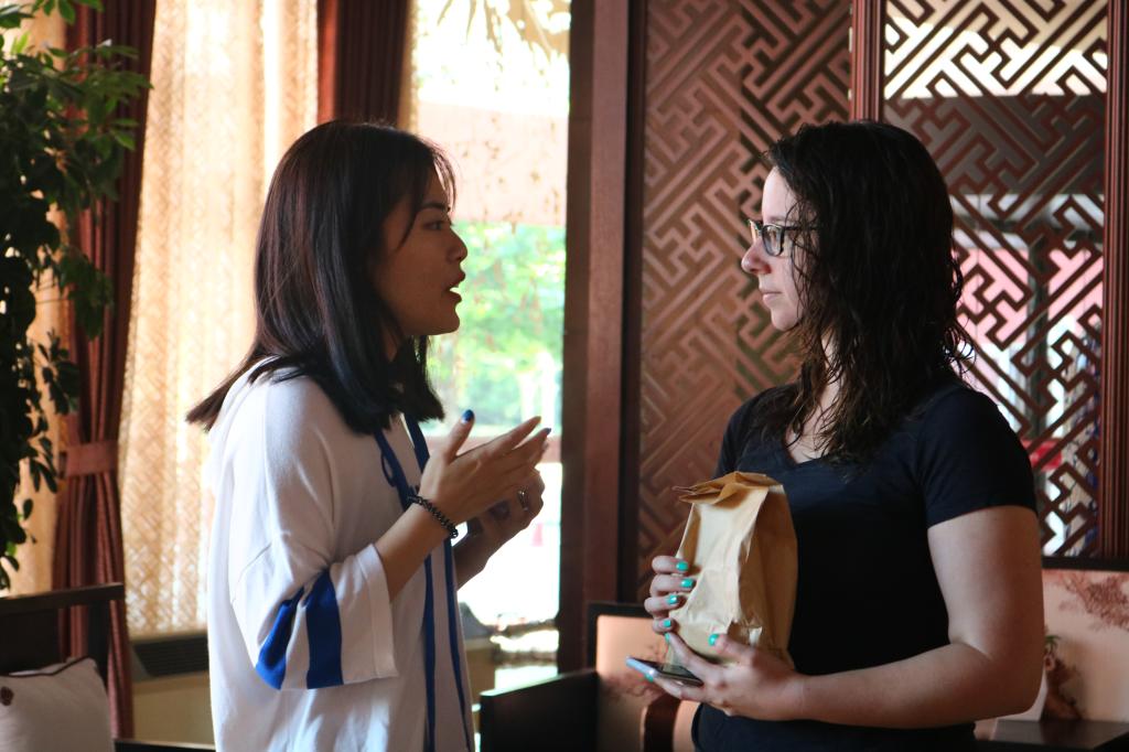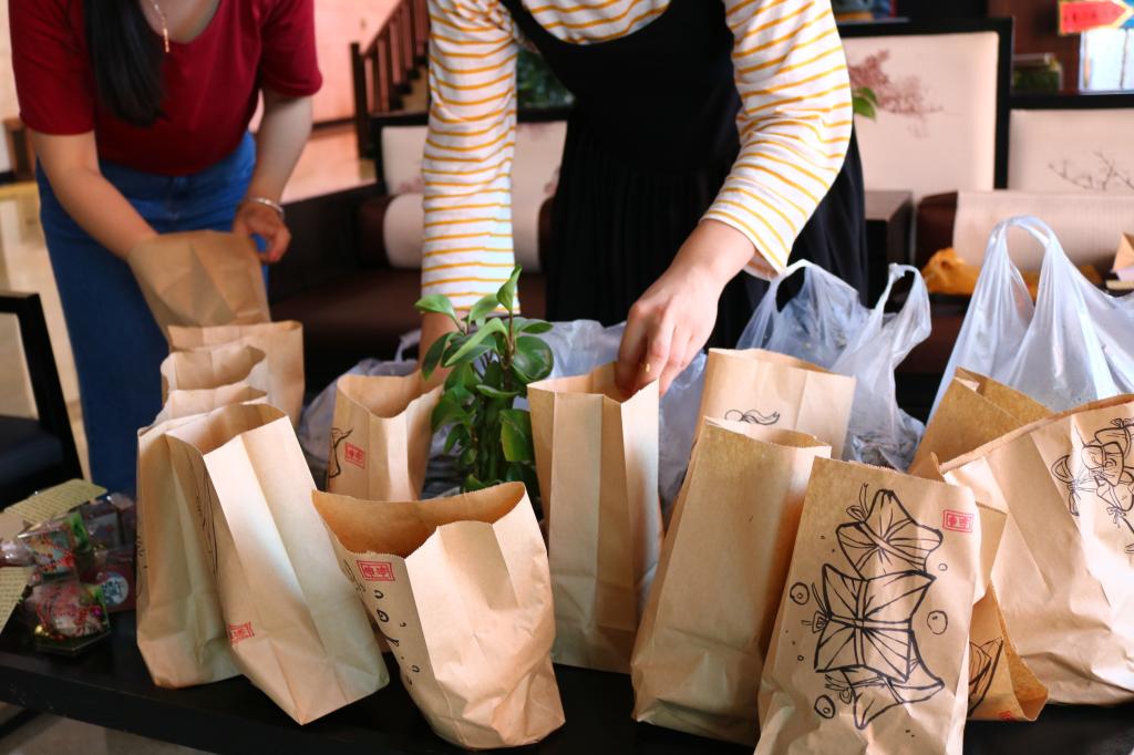 代表们准备了象征着平安健康的艾叶香囊、五彩绳,并亲手为外国友人佩戴,借此送上最美好的祝愿。粽子的包装袋上是由数字媒体艺术班为外国青年粽子绘制的漫画式图案,与粽子“初次见面”的外国友人,对中国传统美食表现出了极大的兴趣,并用中文表达着对中国文化的尊重。整个过程,外国友人在中国传统民俗节日氛围,享受了一场“中式”文化盛宴。