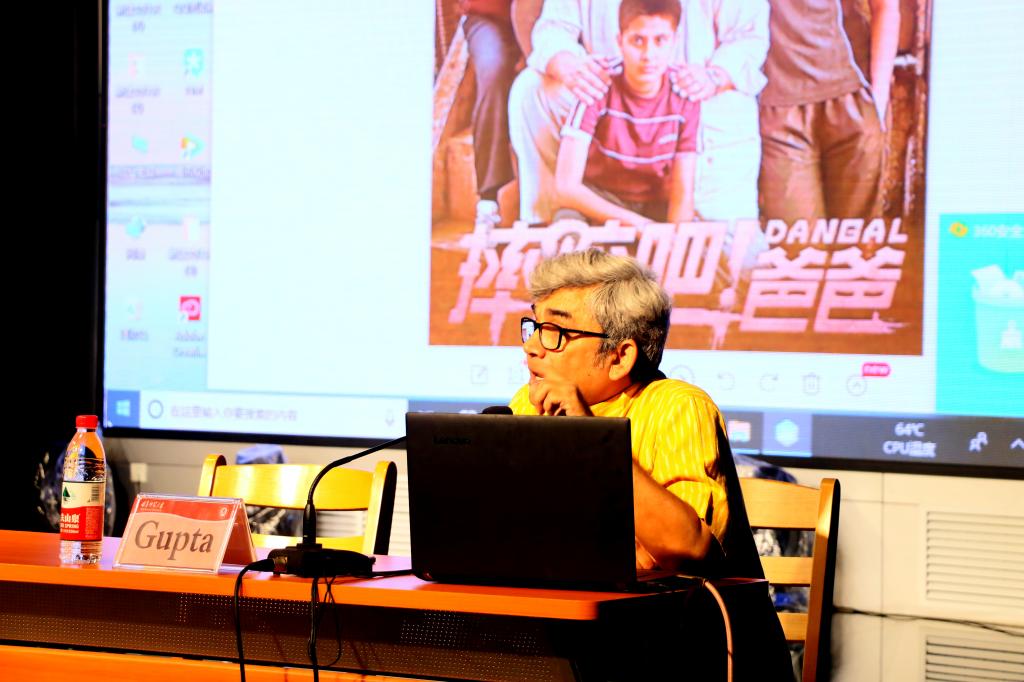 讲座开始前,胡凡刚向阿伦·古普塔教授的到来表示感谢。讲座上,阿伦·古普塔教授以《Contemporary Bollywood(当代宝莱坞)》为题,为本科生和研究生讲授电影方向、剧本写作、电影历史和电影欣赏等课程。他同参与人员分享了从业以来的心路历程及中国导演、中国作品对其的影响,以多部印度经典电影为例,如《摔跤吧!爸爸》、《神秘巨星》、《起跑线》等,深度剖析了电影制作细节,通过宝莱坞电影的发展分析印度电影产业,并探究了印度电影对中国电影市场的影响。本次讲座加深了我校相关专业师生对电影行业前端知识的认识,对我校师生的思路和见识有着极大提升。