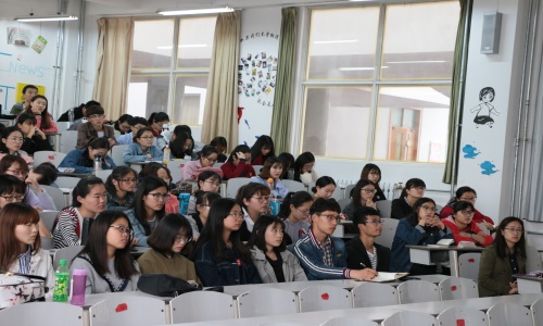 副院长胡凡刚、团委书记刘蓉及相关专业老师出席本次介绍会。2014、2015级数字出版专业学生和16级部分学生参加本次会议。韩涛为本次介绍会主讲人,胡凡刚为主持人。