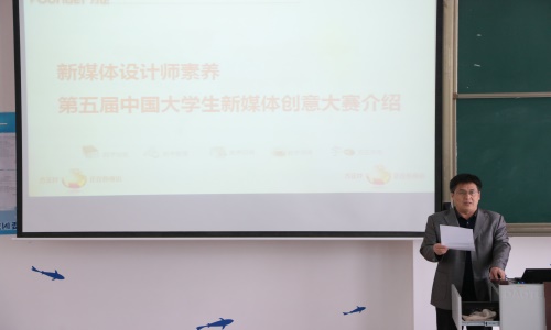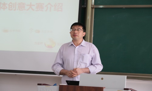 首先,胡凡刚隆重介绍本次介绍会主讲人韩涛,同时介绍本次大赛的相关承办单位及大赛发展现状。接着,韩涛结合前几届大赛的作品,分析各个作品的创新点,点明数字出版有市场的领域和就业方向,讲解如何促进数字出版发展。随后,韩涛展播第四届特别奖获奖视频,比较第四届获奖作品与以前的不同之处,并提出 “内容有深度、用心智创造、注重功能的化繁为简和和谐统一”的要求,只有这样才能创作出优秀的作品。最后,韩涛为大家播放第五届新媒体创意大赛的宣传视频,鼓励大家积极参赛。张大海对大赛相关内容补充说明。