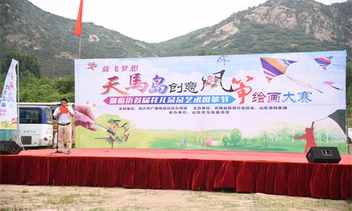 同学们在莒南天马岛风景区与参加手绘风筝活动的其他小朋友一起手绘风筝,并在风筝上表达出妈妈的爱,虽然年龄不同、绘画风格不同,但所有人对母亲的爱是相同的。