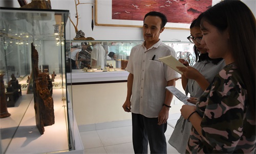 采访结束后,王照烽邀请队员参观工作室,工作室内约有二十件作品展出,包括王照烽本人作品及其学生作品。其中,《邀明月》是王照烽代表作之一,还包括获2011年山东省工艺美术金奖的十八罗汉群像,以及2014年南通国际双年展入围奖的济公系列作品,作品涉猎各方各面,勾勒人物惟妙惟肖。