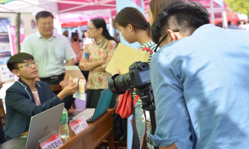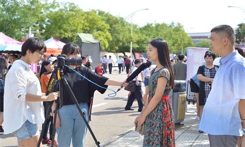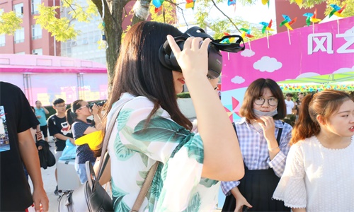 学生自制了VR眼镜素材,让新生以新颖独特的方式体验了曲园风采;无人机的升空将迎新场面推向高潮,由我院影视文化中心的同学操控无人机的飞行,用航拍来引路,使新生眼前一亮。