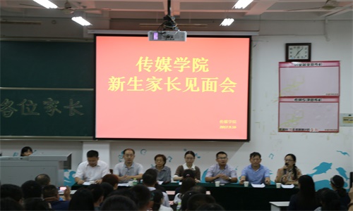 团委书记、2015级辅导员刘蓉,2017级辅导员李兴,数字媒体系系主任、硕士生导师李秀霞,新闻传播学系主任、副教授卢长春,教育技术系系主任、硕士生导师赵可云,新视觉李金涛出席本次家长会。本次见面会由刘蓉主持。