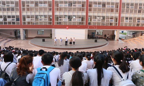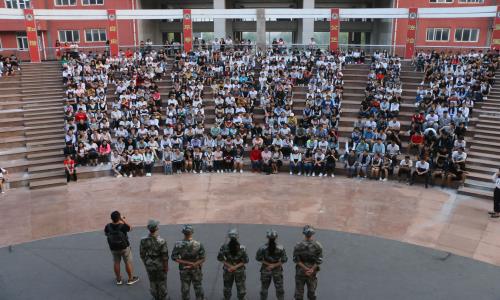 的教官们与新生见面,他们对同学们即将到来的军训提出了要求与期望。