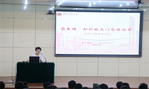 2017级全体新生参加。图书馆参考咨询部仉晓红为本次活动主持人。