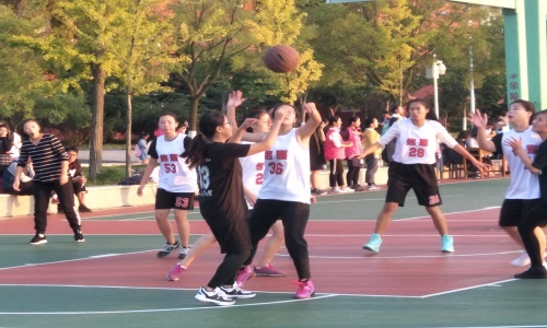10月12日下午16:30,迎新杯女篮比赛在西篮球场正式展开,五号场地上老虎机