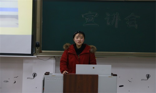 学生会义工与社会实践部部长郑群主持,2015级辛思进、刘晓颖,2016级曹境等人进行了宣讲。