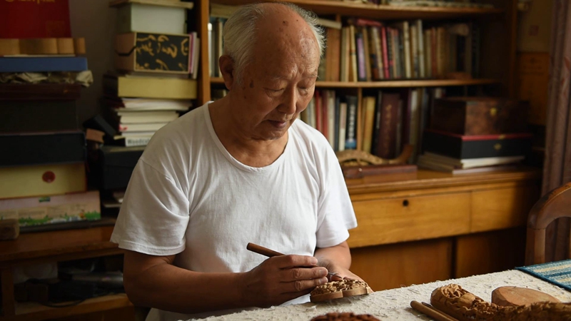 经小队采访:颜景新,山东曲阜人。生于楷雕世家,为曲阜颜氏楷木雕刻第七代嫡传人。国家级非物质文化遗产“曲阜楷木雕刻”项目代表性传承人、山东省非物质文化遗产传承人。2003年被授予“山东省工艺美术大师”称号。2006年12月被国家发展和改革委员会授予“全国优秀工艺美术创作人员”。2007年被山东省授予非物质文化遗产传承人。2009年6月被授予国家级非物质文化遗产代表性传承人。现为中国(楷雕)工艺美术大师、中国工艺美术学会会员、山东省工艺美术学会理事、山东美术家协会理事、国家高级工艺美术师。颜老很开心的接受了艺铭队的采访要求并于家中接待采访队伍。在长达一个小时的采访中,颜老详细的给艺铭队介绍了楷木雕刻的历史、文化内涵以及颜老当年学习这门技艺的艰辛和心酸,颜老的话语中处处充满着对于楷木雕刻的喜爱和对于这门技艺的尊敬。在结束对颜老的采访后,艺铭队来到颜老先生孙子的工作室隆盛轩,参观了颜老先生的优秀作品,颜老的匠心之作让艺铭队深刻体会到了这门古老技艺的美和背后的巨匠精神。在参观作品的同时,艺铭队也和颜老的孙子进行了长时的交流,听取了年轻一倍对于楷木雕刻的想法和面临的挑战。