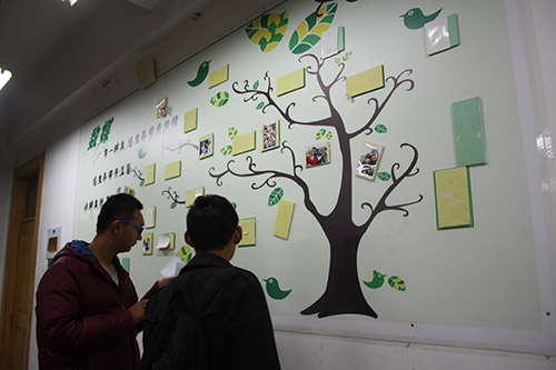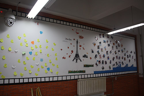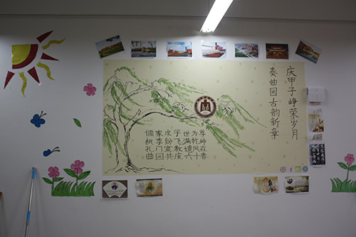 各个班级别出心裁,对教室进行了精心装饰。其中,JA101为2015级教育技术学一班负责的教室。他们采用电影胶片的形式,展现专业特色,鲸鱼形状的照片墙展示了2015级教育技术学一班同学们的风采,同时利用鲸鱼品行善良、团结集体的寓意,展示班级精神,一张张照片为班级营造出了暖心之感。同学们还将自己的心愿写在便利贴上,贴在了教室的后墙,时时刻刻进行勉励,提醒大家不断奋进。在此次教室装饰中,各个专业充分展现了专业特色,比如新闻专业负责的教室中出现了“新闻人誓词”,同时悬挂报纸供同学们学习;数字出版专业的教室有全班同学去北京学习时的班级合照等等。另外,有的班级在装饰中增添了孔子画像,体现曲园人对儒家文化的传承;有的教室将校训贴在后墙上,时刻提醒同学们要秉承“学而不厌 毁人不倦”的曲师精神;有的教室在装饰中加入老虎机