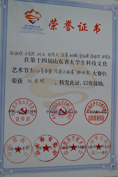 近日,第十四届山东省大学生科技文化艺术节微电影大赛落下帷幕,本次比赛由中共山东省委宣传部、中共山东省委高校工委、共青团山东省委、山东省教育厅、山东省文化厅、山东省科学技术协会、山东省学生联合会共同主办,由共青团青岛农业大学委员会承办。来自全省各校大学生角逐大赛各奖项,我院学生在此次比赛中表现突出,斩获众多奖项。