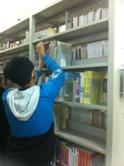 活动当天,同学们早早地到达集合地点,在图书馆管理员的带领下很快的熟悉了工作内容。在活动过程中,同学们积极配合图书馆工作人员,认真仔细地整理书籍。大家先将书籍分类,一摞一摞放在推车上,接着按分类书架摆放整齐。有的书架过于拥挤,以致新放回的书籍无法排进去,同学们便将书籍整排地移动空余书架。一番整理过后,书籍摆放的更整齐了,这不仅方便了同学们借书,也有利于图书馆书籍管理。本次活动充分体现了当代大学生的热情与朝气和志愿者真心服务他人的精神,将志愿者活动的本质融入到了工作中。活动于早上9:30圆满结束。
