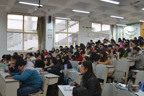 李艳梅以自己的高考复读和大学勤工俭学人生经历作为开篇,首先跟同学们分享了自己作为一个优等生两度高考而又两度失利的经历,告诉同学们人生肯定有所不如意,但既来之,则安之,珍惜学生生活和锻炼机会,踏实走过四年的大学生生涯,不要后悔。讲述之余,李老师还声情并茂的朗诵了一段当年大一的自己所写的青涩日记。