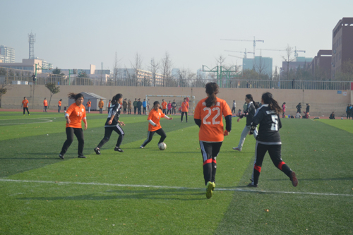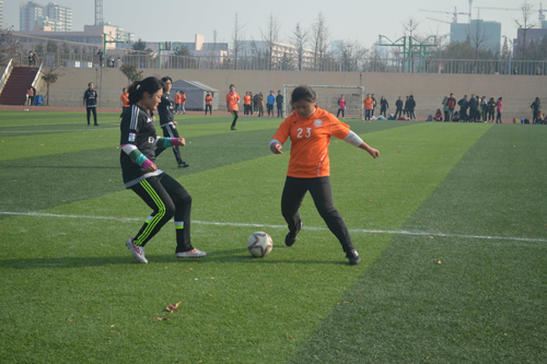 对战地理科学与旅游学院足球联赛在西操场准时进行。