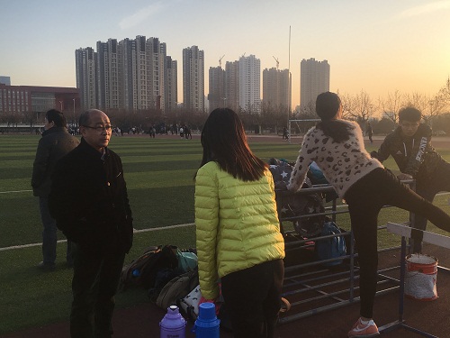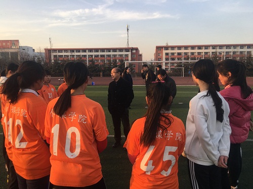 党总支副书记、2014级政治辅导员肖龙航,2013级政治辅导员李兴带领学院团总支学生会相关部委学生干部到我校西操场走访运动员训练情况。