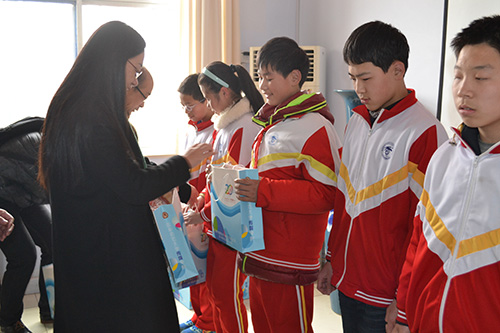 团总支书记、2015级政治辅导员刘蓉走进日照市特殊教育学校,为孩子们送上衣服,让孩子们穿上新衣过春天。