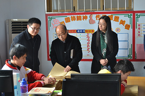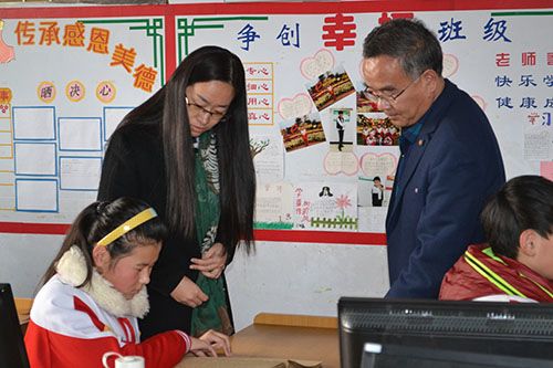 随后,肖龙航和刘蓉在学校领导带领下参观了学校班级。孩子们通过盲文读出了清朗的课文,在电脑上绘画出色彩斑斓的作品。肖龙航和刘蓉与孩子们进行了亲密交流,询问了孩子们的近期情况,并鼓励孩子们克服困难、勇往直前。