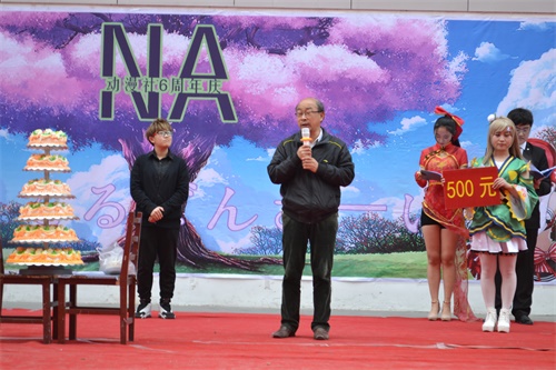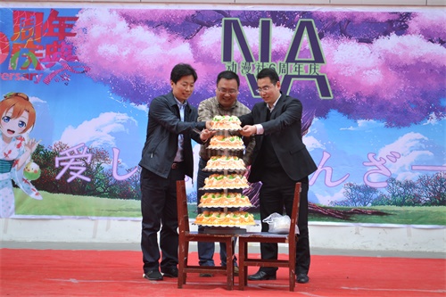 NA动漫社六周年庆“爱上你万岁”主题演出在阳光会场成功举办。日照校区学生工作办公室老师钟振洪、马腾,今朝文化有限公司经理王成,老虎机