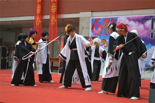 演出在欢脱可爱的舞蹈中拉开了帷幕,NA动漫社邀请日照职业技术学院RED动漫社带来的舞台剧《死神》作为第一个话剧节目向观众展示了动漫人物满满的青春、强烈碰撞的友情和隐隐约约的爱情,精湛的演技、完美的声效配合赢得阵阵掌声。此次NA动漫社的演出包括动漫话剧、为网游爱好者们精心准备的大型网游改编剧等多种形式的舞台剧,精彩的演出、完美的声效配合和演员们精彩的演绎,带领着观众们穿越到了属于他们的时代。