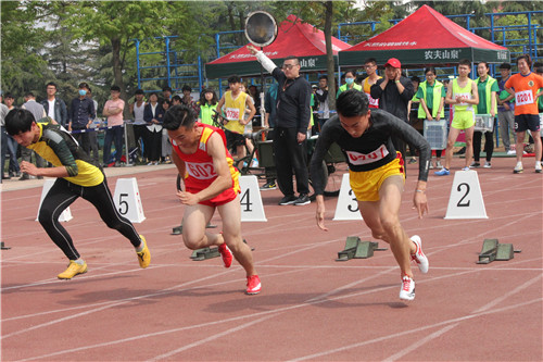 的运动健儿们便充分发挥自身优势,调整自身状态快速投入到比赛中去,在运动会第一天便首战告捷。其中,2014级朱竹在女子跳高比赛中以1.47米的优异成绩刷新了之前由自己创下的记录,荣获第一名;第一次参加运动会的2015级李丹玉更是跳出了1.32米的好成绩位列第二;2014级高鹏飞在男子100米决赛中凭借11秒3的突出表现勇夺第一名;此外,教工组中的男女趣味接力项目也勇夺桂冠。