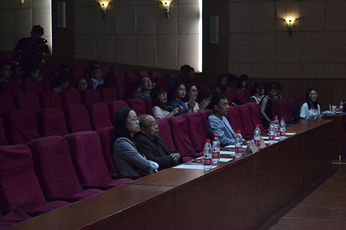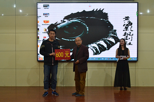 向黄海影剧社颁发社团活动资金600元,并鼓励社团加强活动举办力度,在提高同学们参加活动积极性的同时发展好社团。随后,比赛在唯美清新的开场舞《尤物》中缓缓拉开了帷幕。本次才艺比赛以守、攻擂方式进行节目对决,分为歌曲PK、相声PK、话剧PK三个环节,每一个环节结束后都由评委老师和现场观众对节目进行投票作为最终节目排名的依据。歌曲对决赛中,王心融、郭梦琪用优美的声音为大家带来歌曲《倒带》,张宇不甘示弱,一首《梦醒时分》振奋人心。在歌曲大比拼游戏环节中,主持人邀请七位参赛选手和一位观众上台并分为两队,每位参与者依次唱出含有“爱”字的歌,场上氛围轻松活泼。相声对决环节中,王振、刘聪用妙语连珠的台词、搞笑夸张的动作演绎相声《满腹经纶》,笑点连连,观众席中呼声阵阵,掌声雷动。而官小迪、孔琛刚柔并济、风格混搭的舞蹈串场更是引起观众们的连声叫好。比赛的重头戏是新闻班同学带来的话剧《暗恋桃花源》和《倾城之恋》,同学们大饱眼福。在经过三轮才艺PK环节后,王心融、郭梦琪的歌曲《倒带》,张宇的《梦想时分》名列歌曲节目的前茅,刘聪、王振的相声《满腹经纶》在相声PK中脱颖而出,《倾城之恋》依其独特的剧情和引人入胜的表演氛围荣获话剧组的桂冠。