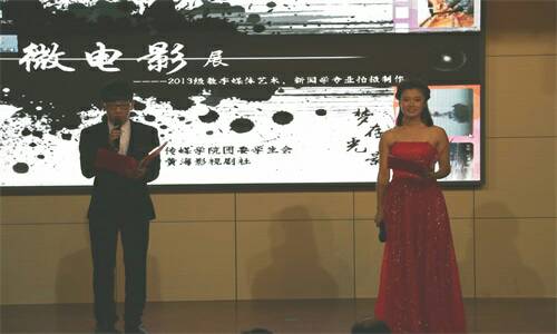 开幕式上展播了共十部我院2013级数字媒体艺术及新闻学学生自编自导的微电影:讲述古老豆腐工艺的《老历家的豆腐》,民间艺术家老岳制作精美核雕的故事–《方寸间的人生》,赞美渔人信念的《渔人的使命》、走近胶东之花–茂腔的《寻腔》、直面命运考验的《最美夫妻》、讲述人与老船场故事的《船至暮年》、刻画勤勤恳恳、默默无闻保安的《保安老孙》、相濡以沫、以心捆绑–《捆绑夫妻》、赞美工地劳动者的《工地上的夫妻》、纪录贝斯艺人制作贝斯的《病物》。十部作品各具特色、画面引人入胜,虽是学生作品,但其中充分体现了导演者的努力与指导者的专业。