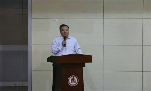 党委副书记肖龙航上台致开幕辞,他首先向积极筹备此次活动的老师同学们以及出席开幕式的领导嘉宾表示由衷的感谢,并对本次活动给予充分肯定:“我院的科技影视文化艺术节已走过九个年头,本届为第十届,它承载了传媒学子开拓创新、不断进取的精神,为我院学生自编自导的微电影提供了一个展播平台,是我院提高人才培养质量的重要举措,是我院的特色性工作”。他表示,全院师生应共同努力,完成我院由教学大院向教学科研强院的转变。最后,他预祝本届科技影视艺术节取得圆满成功。