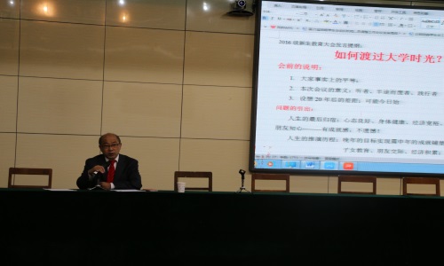 报告会上,肖龙航围绕“适应大学、顺利毕业、顺应社会、平度今生”这一主线对2016级新生进行了大学生活的指导。