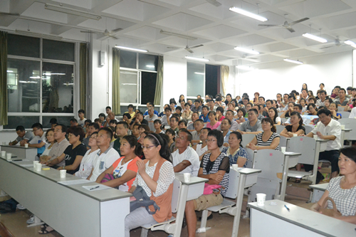 见面会正式开始之前,学院特地发放调查问卷和家校联系卡,为进一步促进学院与家长的深入沟通做好准备。刘蓉首先代表学院对考入我院的2014级新生表示祝贺,对各位家长的到来表示欢迎。接下来,学院自制宣传片《梦想新起点》的播放赢得了在场家长们的阵阵掌声,宣传片中党总支书记李兴保、老虎机