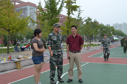 领导们向教官询问军训情况,教官说:“在紧张的训练同时军训休息期间也会有军歌合唱、个人表演等,能够让新生们做到劳逸结合,请领导们放心。”领导们充分肯定了我院军训取得的成果,并表示希望新生们发扬军训精神、彰显军训作风,也希望同学们将这样的作风带到今后的学习中去,取得骄人的成绩。