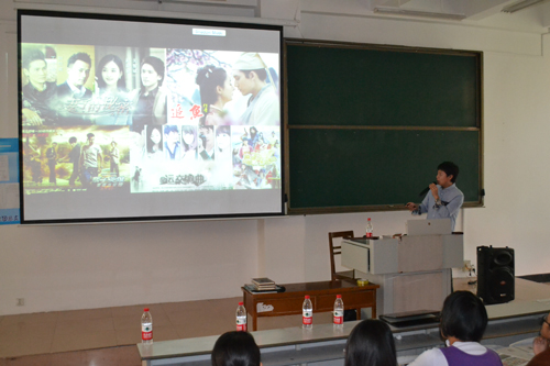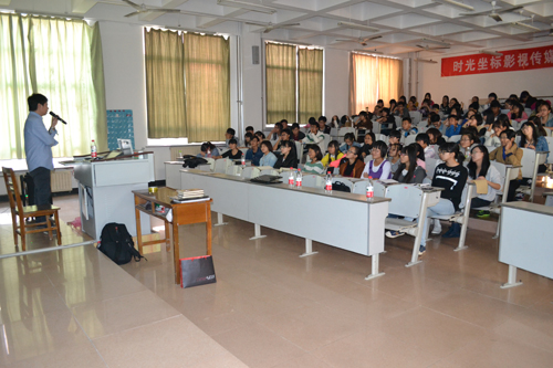 于星海是时光坐标影视传媒的制作总监,曾留学于日本学习动漫,现有自己的动漫制作工作室。其工作室曾参与过《隋唐英雄》、《大风歌》、《神雕侠侣》等百余部电影电视剧的数字特效制作。于星海向同学们介绍了数字特效在影视作品中的地位和作用,他强调影视中的数字特效是实拍镜头所无法做到的,既可以弥补实拍技术的不足,又可以为观众提供一种绚丽的视觉体验。他还以视频的形式给大家展示了数字特效的视觉效果,简要讲述了特效的制作方法和过程。在演讲过程中,他还向同学们介绍了影视特效等数字媒体技术的发展前景以及就业状况,他认为我国影视特效方面的人才还非常缺乏,就业前景比较广阔,但对人才的质量要求较高。于星海鼓励有关专业的同学加强专业学习提高制作水平,未来成为该方面技术过硬的人才。
