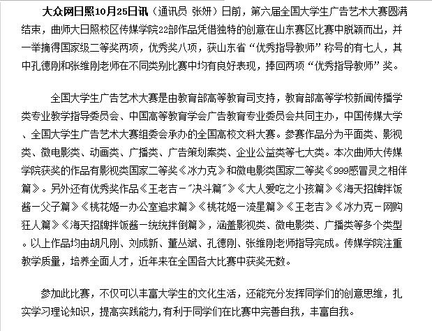 大众网:曲师大老虎机 在第六届全国大学生广告艺术大赛中摘奖