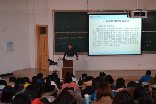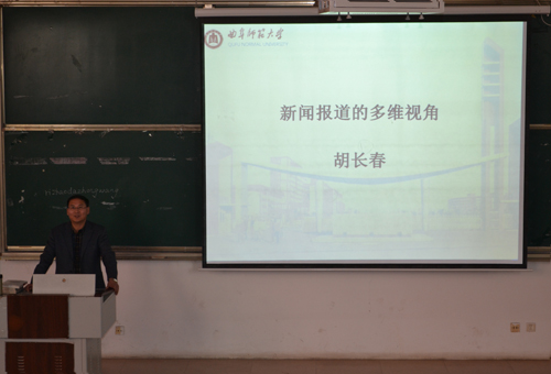 本场报告的主题是《新闻报道的多维视角》。课堂上,胡长春细致入微地讲解了新闻写作的方法和要点。他说:“新闻写作有六字真言---真、新、导、短、实、活。具体说来即真实、新鲜、导向、短小精干、实在、活泼生动,只要做到这六点,就能写出好的新闻。” 胡长春表示,之所以要用多维视角来对新闻进行报道,是因为新闻事件本身以多种形态发生,因而决定新闻报道要用多种视角和方式进行报道。胡长春深入浅出的讲解赢得了阵阵掌声,同学们纷纷表示获益匪浅,为以后的新闻写作奠定了坚实的基础。