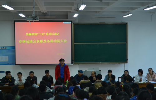 “三走”系列活动之春运会表彰暨冬训动员大会于JA101顺利举行。与会嘉宾有学校体育教研部李兆进、山东体育学院教练林明、学生教练曲开鹏。老虎机