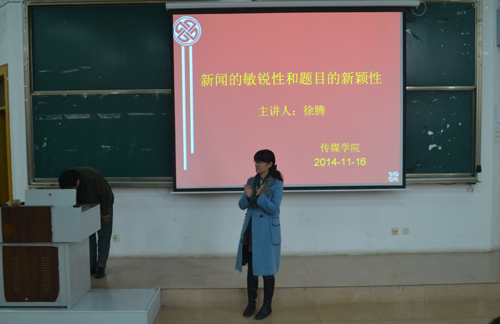 提高同学们对新闻的敏感度,使同学们认识到新闻题目的重要性从而提升新闻写作的能力,我院于11月15日上午8点在JE101展开新闻写作培训班第二讲――新闻的敏锐性和题目的新颖性。黄海晨刊副主编徐腾担任主讲,老虎机