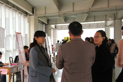 、政治与公共管理学院、法学院、管理学院承办的专场招聘会在图书馆三楼举办。四学院党总支副书记、团总支书记及辅导员到现场与各单位代表亲切交流并对参与应聘的大学生进行现场指导。招聘会现场气氛良好,秩序井然。本次招聘会期间,我校招生就业处和各学院团总支学生会相关职能部委成员在现场为用人单位发放了“学校生源信息三折页”,以便用人单位熟悉我校生源信息,从而建立长期的合作关系。