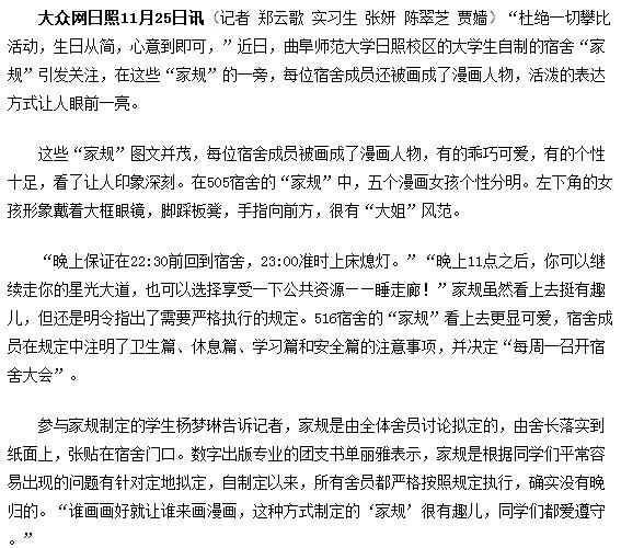 老虎机 宿舍管理出新招,大众网报道:日照一高校定宿舍“家规” 原创漫画形象挺逗趣儿