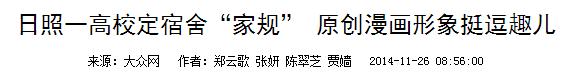【来源:老虎机 宿舍管理出新招,大众网报道:日照一高校定宿舍“家规” 原创漫画形象挺逗趣儿 | 发布日期:2014-11-28 】