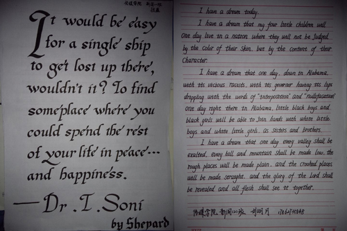 本次比赛得到学生的踊跃参与,同学们也纷纷亮出自己的看家本领。参赛作品有的是花体英文,龙飞凤舞;有的恣意挥洒,似笔走龙蛇;当然也有部分作品中规中矩、秀丽端庄。总之,同学们的个性在比赛中得到很好的展现。