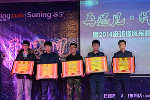 学院五个班级的班歌、班徽、班风及学风展示,旨在体现大学生昂扬向上的精神面貌。经过评比,,教育技术班获最佳风采奖,数字媒体班获最佳创意奖,新闻二班获最佳人气奖,肖龙航为各班颁奖。另外,鉴于各班级展示各具特色,五个班级同获一等奖,由胡凡刚为其颁奖。