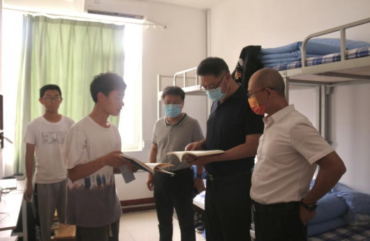 党委书记王宏杰、院长王焕景、党委副书记田荣林、全体辅导员一同深入2022级新生宿舍看望新生,查看新生住宿环境,并与新生进行亲切交流。